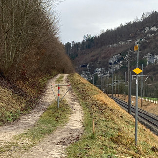 As you walk along the stream, there are many caves to explore. Make sure to take note of all the historical information available to you in the maps (with the help of Google Translate). If you are wanting to continue to Zwingen be sure to take the upper road after Site 5, which will lead you up a steep path and eventually on to a small dirt road.